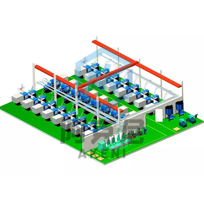 集中供料系統是指通過設計,整合將各種加工設備及生產設備連接起來,在中·央計算機統一管理下,協調工作,實現對物料的集中干燥,自動配比混合,一對多點遠程定量輸送,并對輸送管路的切換、清理,實現自動化處理。